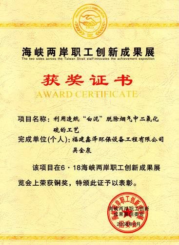 海峡两岸职工创新成果展铜奖(造纸白泥)