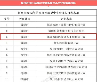 近日,福州市工业和信息化局发布“关于2023年第八批创新型中小企业拟推荐名单的公示”公告通知,我公司成功入选“2023年第八批创新型中小企业”。