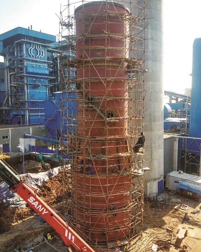 兰溪协鑫环保热电有限公司热电联产技改项目4#炉石膏湿法脱硫EPC项目自开工建设以来,在公司领导的大力支持下,经过项目部的精心协调和周密组织,冒着高温酷热的天气,克服现场施工队多、场地不够等困难,在施工40天内,4#吸收塔比原定计划提前了5天顺利封顶,在工程协调会上得到业主的公开表扬。